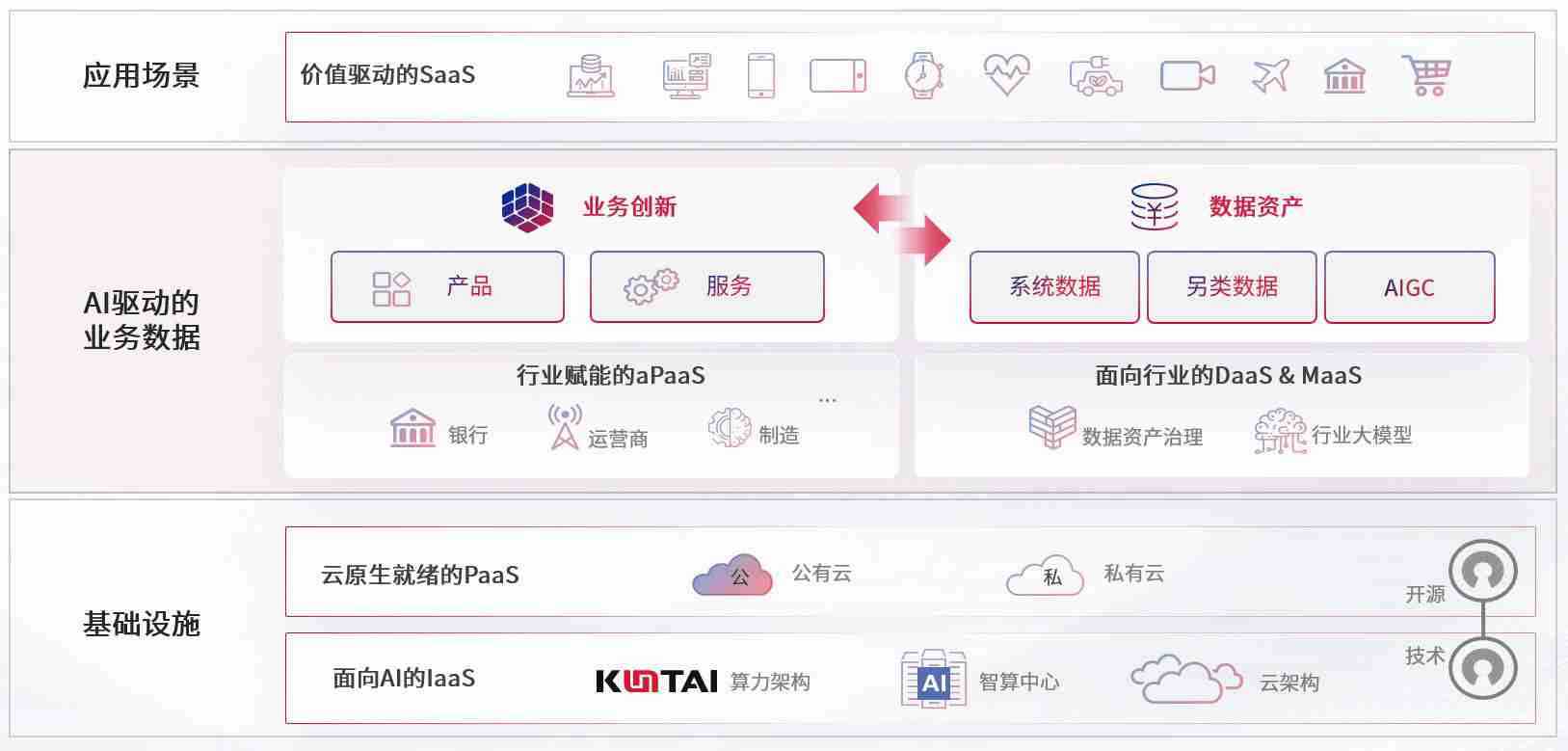 数字时代,,,,围绕企业数字化转型的关键要素,,,豪门国际数码开创性的提出数云融合战略和技术体系框架,,着力在云原生、、、、数字原生、、、AI原生和信创产业上架构产品和服务能力,,为处在不同数字化转型阶段的快消零售、、、汽车、、、金融、、医疗、、政企、、、、教育、、、、运营商等行业客户提供泛在的敏捷IT能力和融合的数据驱动能力,,,构建跨界融合创新的数字业务场景和新业务模式,,助力企业级客户建立面向未来的核心能力和竞争优势,,,,全面推动社会的数字化、、智能化转型升级。。。。